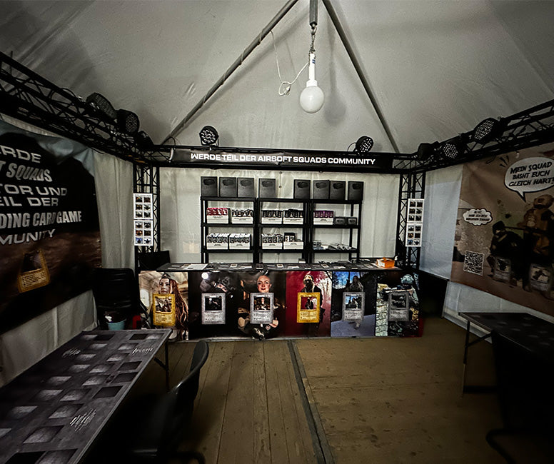 Wir freuen uns riesig über die erfolgreiche Kooperation mit den Airsoft Helden zur Dark Emergency 11! Dank dieser Partnerschaft konnten wir vor Ort auf dem Marktplatz einen kleinen Shop einrichten und das Airsoft Squads Sammelkartenspiel der Community vorstellen. Es war großartig, die Begeisterung der Spieler und Fans live zu erleben und unsere Karten hautnah präsentieren zu können. Ein herzliches Dankeschön an alle, die vorbeigeschaut und diesen Event unvergesslich gemacht haben!